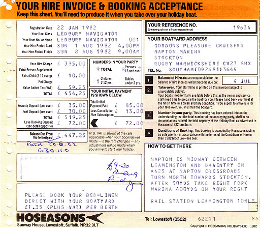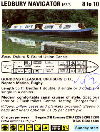 The Ledbury Navigator was hired from Gordons Pleasure Cruisers, Napton Marina.